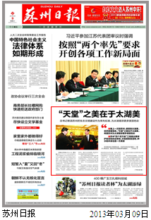 蘇報(bào)北京專電(特派記者 顧志敏)昨天(3月8日)上午9點(diǎn),人民大會(huì)堂西大廳里氣氛熱烈。中共中央總書記、中共中央軍委主席習(xí)近平來到江蘇代表團(tuán),與代表們一起審議政府工作報(bào)告,共商“美麗中國”發(fā)展大計(jì)。全國人大代表、省委常委、市委書記蔣宏坤發(fā)言后,習(xí)近平饒有興致地回憶起去年7月蘇州之行?!拔疑弦淮蔚教K州,感受到太湖美,依然青春煥發(fā)。”習(xí)近平說,“‘天堂’之美在于太湖美,不是有一首歌就叫《太湖美》嗎。確實(shí)生態(tài)很重要,希望蘇州為太湖增添更多美麗色彩?!?/p>