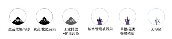本次調(diào)查分別向被訪者所感受到的城市鄉(xiāng)村的水污染情況進(jìn)行了解,其中重點(diǎn)調(diào)查了百姓認(rèn)識(shí)到的本地水污染的源頭。
